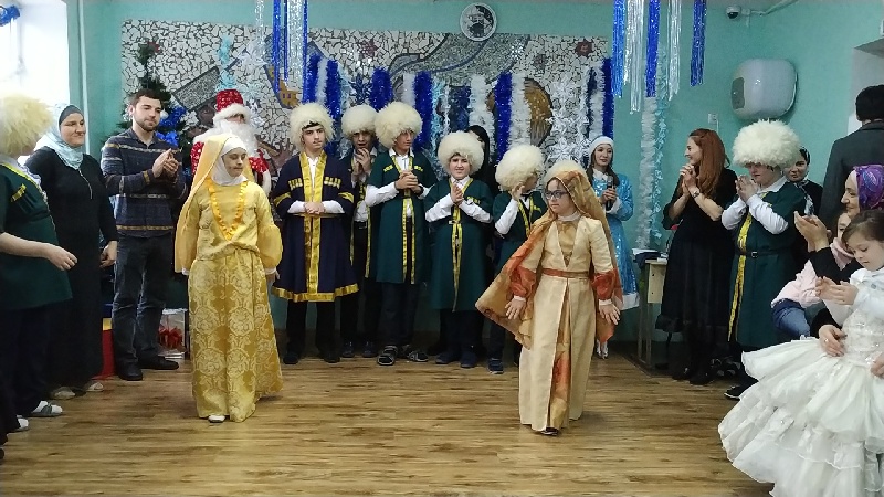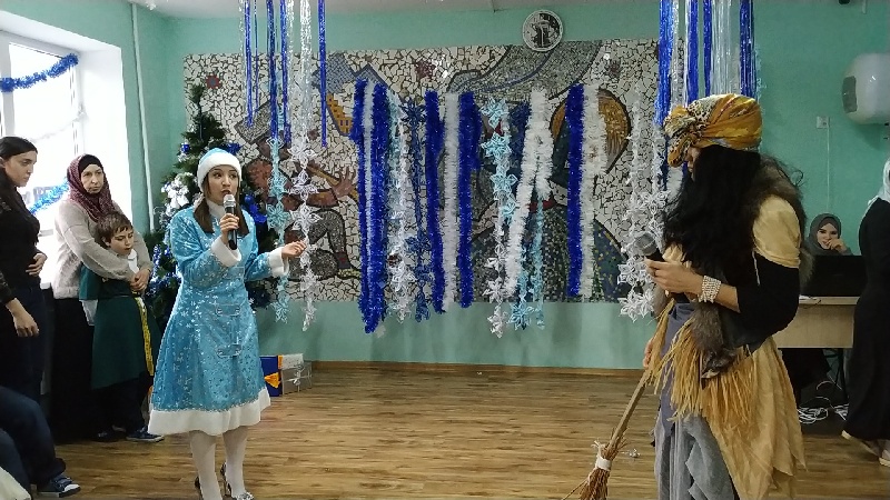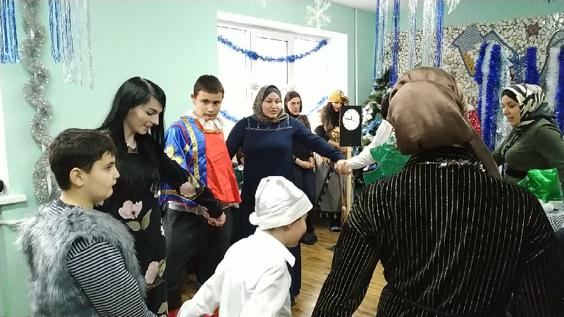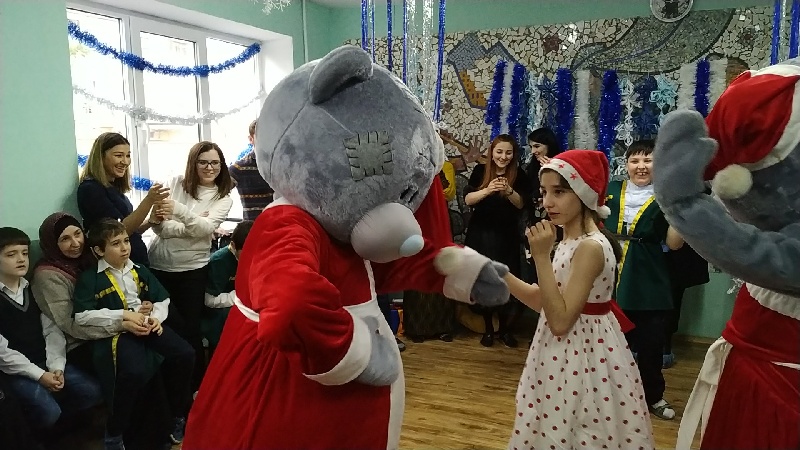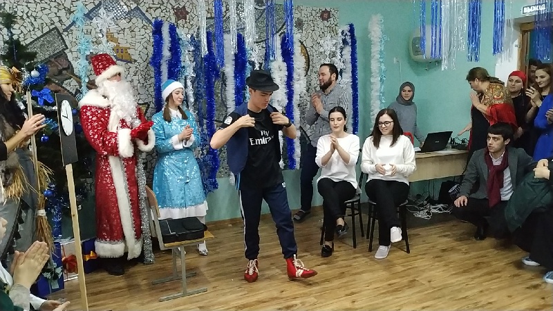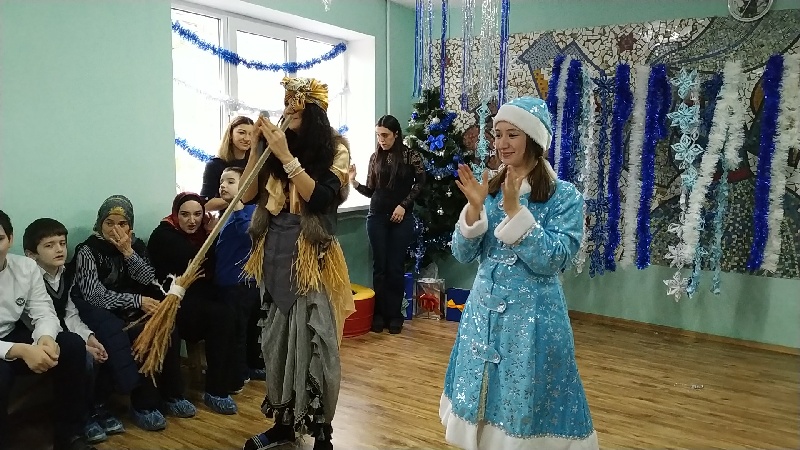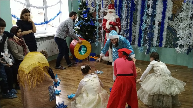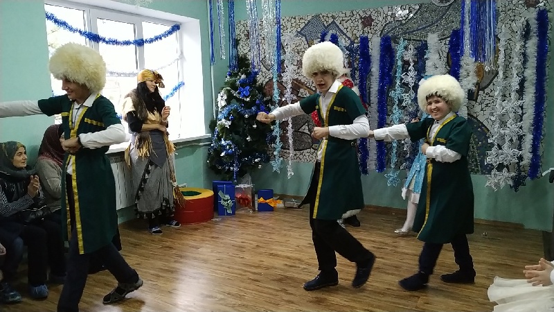 После массово танца и долгого ожидания появился Дед Мороз со сценкой «Паровоз», где также были задействованы маленькие воспитанники центра. Вслед вышли старшие воспитанники с номером «Лезгинка».