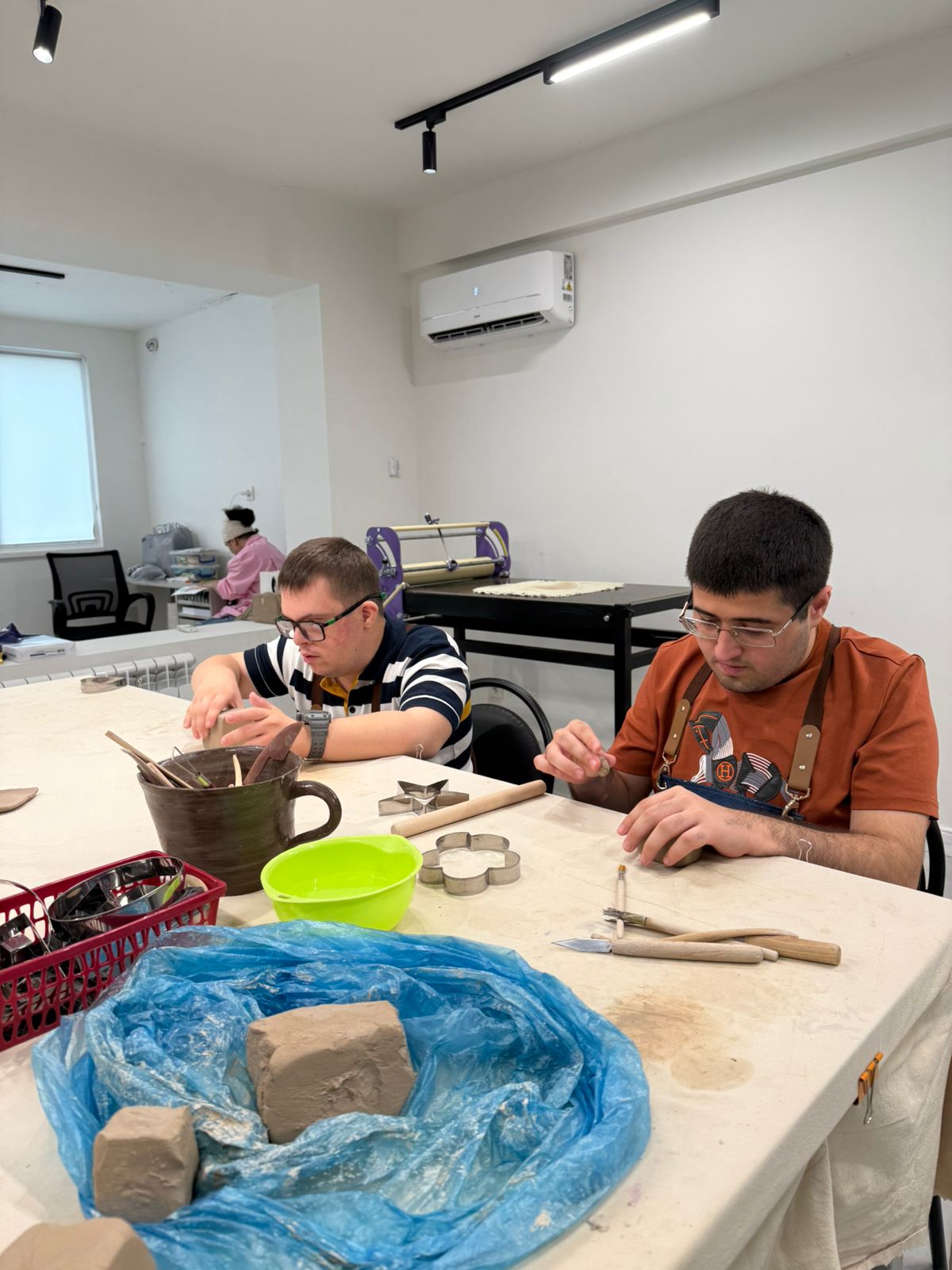 Ремесленная «Особые мастера» - это пространство, разделенное на несколько зон: лавка и мастерские (швейная, керамика и полиграфия). 20 воспитанников ДРОО «Жизнь без слез» регулярно работают здесь группами по 10 человек. Ребята здесь отрабатывают навыки работы с глиной, текстилем и полиграфическим оборудованием. Скоро ремесленная объявит о мастер-классах для всех желающих.